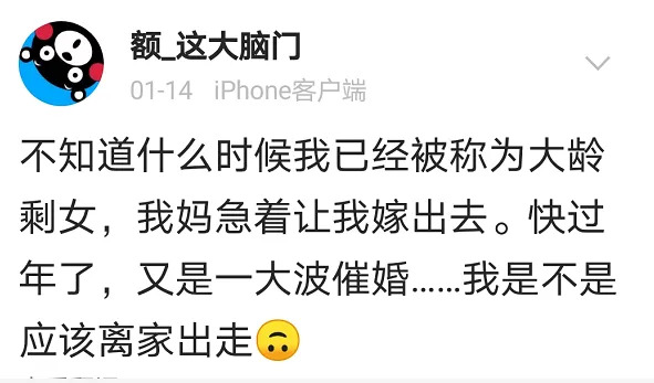 “大龄剩女”不配回家吗?当然不是。单身不是原罪,大可不必离家出走。