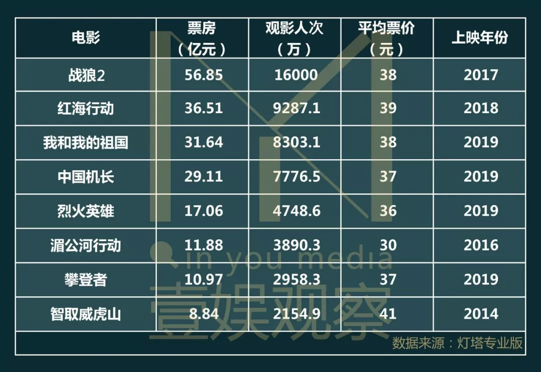 经过商业化、类型化创作的主旋律题材,其票房号召力从2016年的《湄公河行动》和2017年的《战狼2》开始凸显,目前中国影史票房前10中主旋律电影已经占据4席。