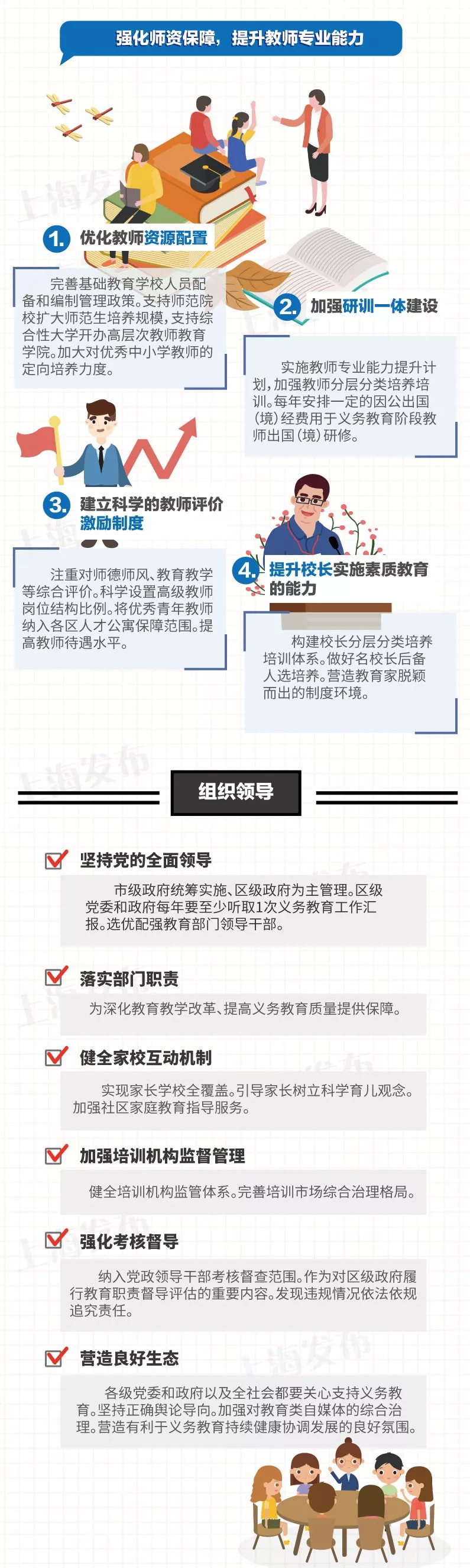 《实施意见》指出,各级党委、政府和全社会都要关心支持深化教育教学改革、全面提高义务教育质量工作,不仅明确了各部门在义务教育改革发展中的职责,还特别提出了8项新的政策性举措。