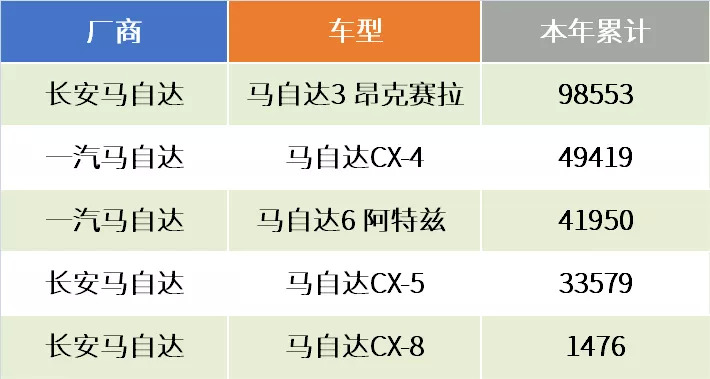 如果再具体点来看,过去一年马自达在中国市场销量为22.8万辆,同比下滑16.7%,不及年初预计的27万辆目标。