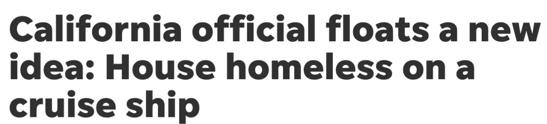 加州市议员一看,这眼下加州庇护床位供不应求、没有自来水和厕所,已经成了人道主义和公共卫生紧急事件。游轮简直是再好不过的救急了!