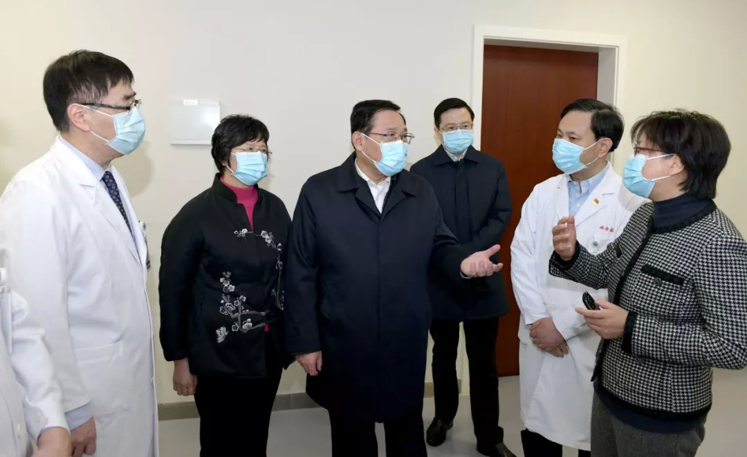 上午,李强来到上海交通大学医学院附属瑞金医院,检查春节期间就医保障情况,向在岗医生护士亲切问好,并对全市医务人员的医者担当和无私奉献表示敬意与感谢。李强详细听取新型冠状病毒感染的肺炎疫情防控工作汇报,深入询问医院接诊、筛查流程以及防护、诊疗等举措。