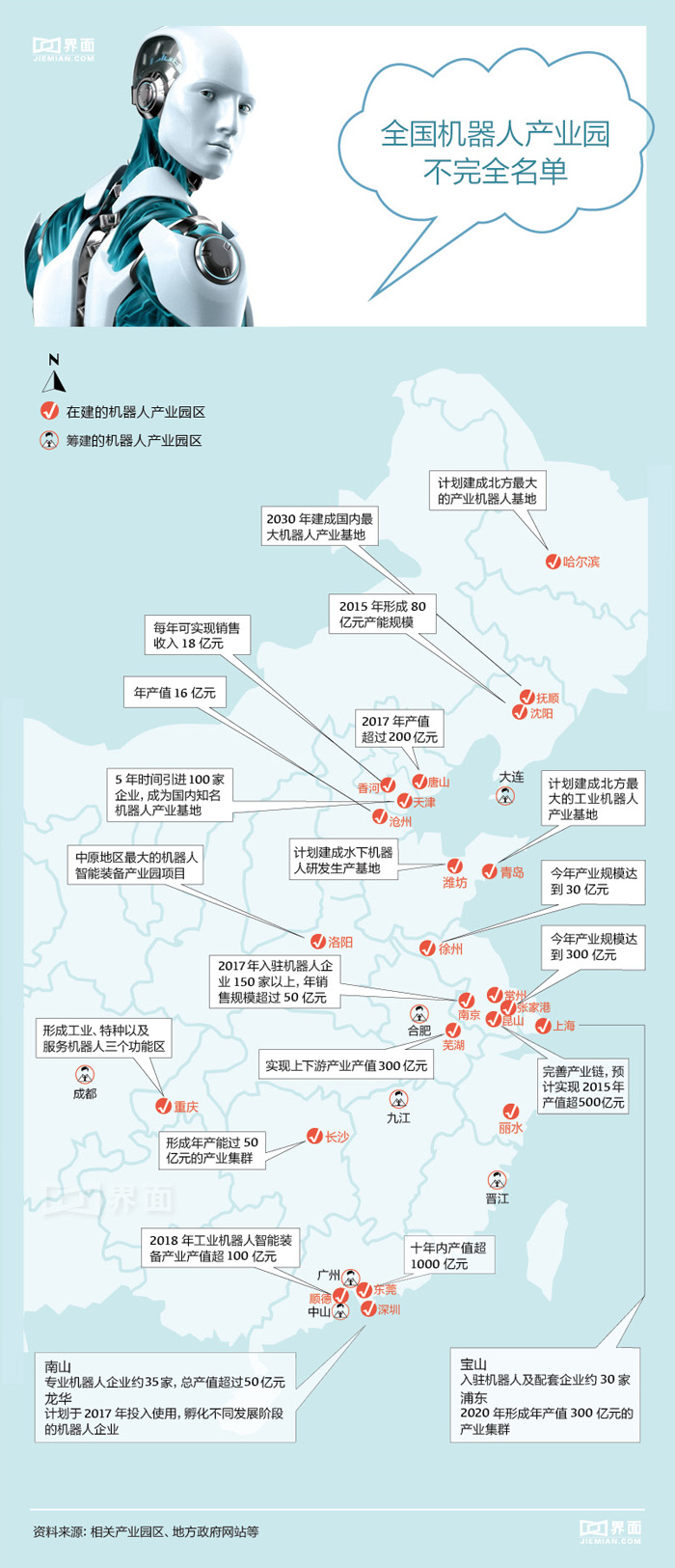 机器人也因此成为地方政府趋之若鹜的新兴产业。接踵而来的,是国内如火如荼的机器人产业园建设风潮。