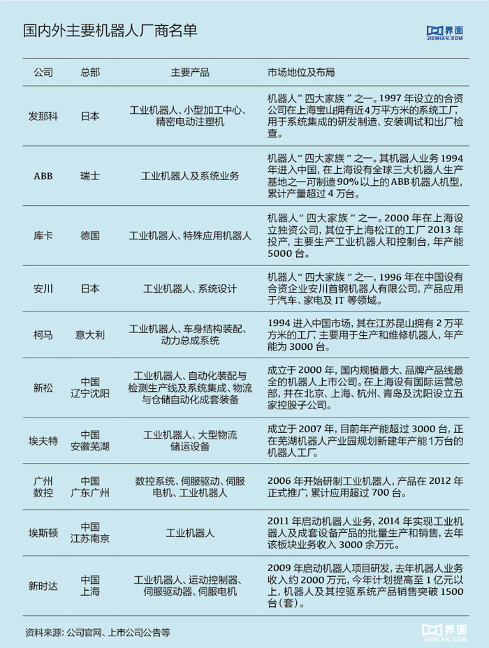 相比于近些年才拔地而起的机器人产业园,包括“四大家族”在内的外资机器人公司早在1990年代就嗅到了市场的机会,它们通过独资或合资的方式进入中国,在汽车制造等领域寻求机器人的应用市场。