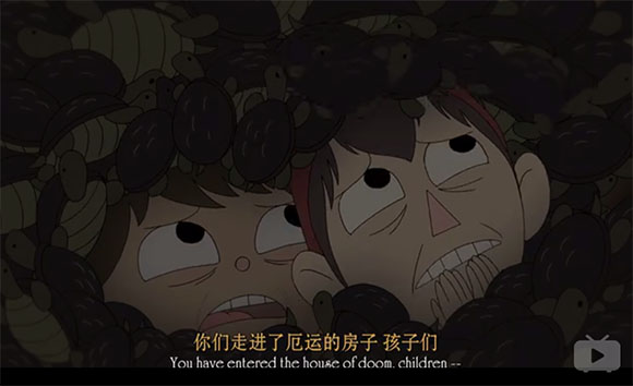 《花园墙外》的画风纯朴,人物线条简单,但这童话般的故事却并不是针对低幼年龄层所创作的。如果要用四个字形容这部creepy的动画,那必定是:细思极恐。