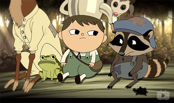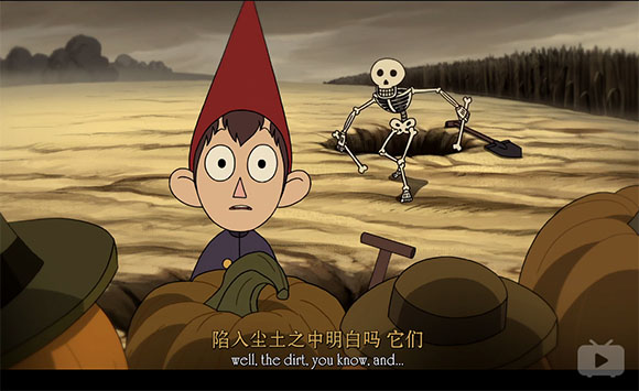 这是《花园墙外》的故事伊始。片头画面里面闪过的一些片段,在没有看完整部动画的情况下,你都猜不出什么意思。