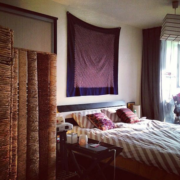 再往源头上推,如果在租房的一开始就选择一个只有基本大件,显得空旷些的屋子,那么自己发挥的空间就会更大,有时间和精力的就还能做一些简单的软装。布是做出租屋软装最好的一种材料,它容易清洁,也不会为搬家带去太多的麻烦,而且装潢效果好——觉得屋子里丑的、不想用的,都可以用喜欢颜色或花纹的布包起来;布脏了就拿去洗衣机洗一洗;搬家时,折好带走就行了。
