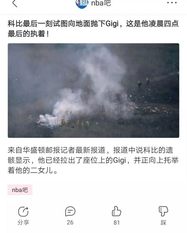 根据外媒报道,科比生命的最后一秒还试图将女儿扔出机舱