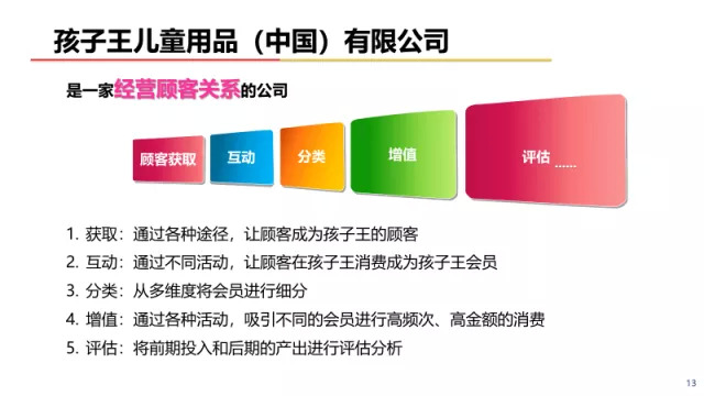 首先,我们经营好客户就要把顾客当作我们的朋友、闺蜜,真正理解和关心他们,为他们创造价值,赢得顾客的认同和信赖。孩子王明确提出从经营商品到经营顾客,从提供客户对需求的满足到创造需求、满足新的需求。