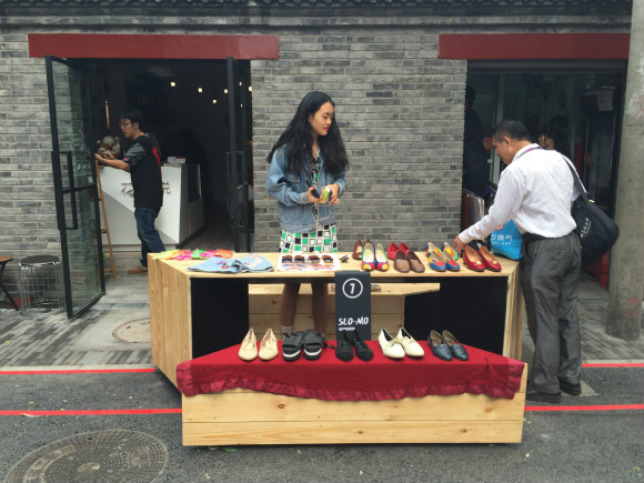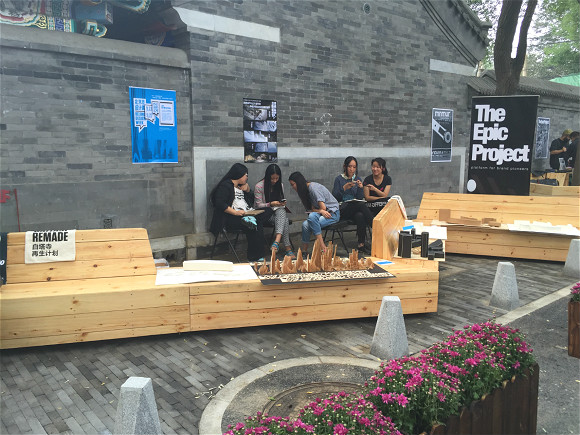 平日里如非这些白领,白塔寺一带和热闹根本沾不上边。但9月24日,第一次加入北京国际设计周就作为主展场的白塔寺展区开展,宁静悉数被打破。胡同里,贩卖鞋子、装置艺术品、模型、手机壳等各类创意小物的市集挤满了狭窄的道路,年轻的中国摊主和外国摊主相互交谈着,有时还会忽略前来问津的客人。英国V&A设计博物馆的来客和巴塞罗那来的城市专家在街旁举办着讲座,认真的年轻人们低头速记着。