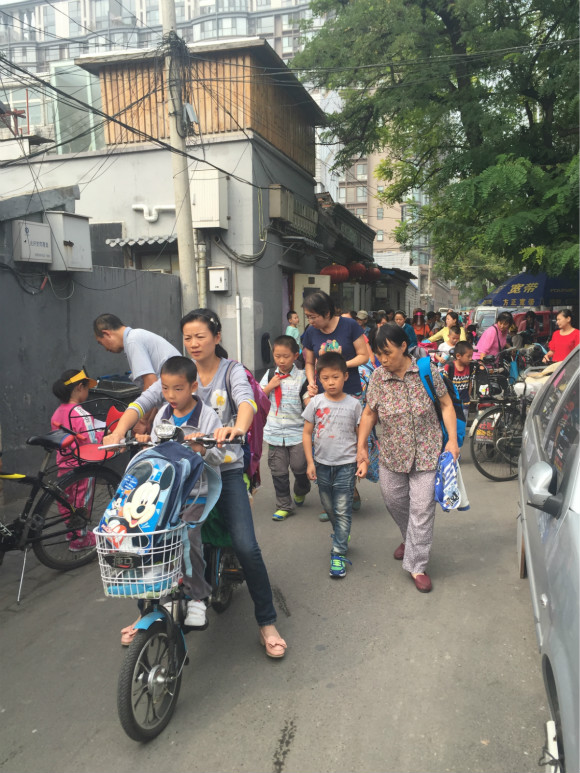 临近下午2点,白塔寺西边的一条胡同忽然堵得水泄不通。原来那是一所社区小学放学了,不远处的菜市场还是人丁兴旺。几个赤膊大汉支起了桌子,准备下象棋。贴着天猫Logo的送货车灵巧地穿行在狭窄的巷道。