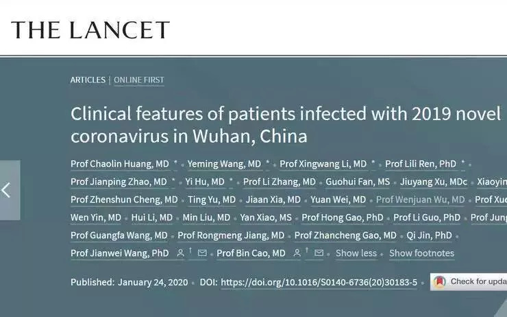 1月25日发表在《柳叶刀》上的两篇新型冠状病毒研究论文