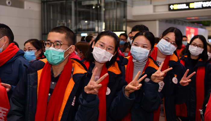1月28日晚七时,广东继续派出147人的医疗队奔赴湖北,支援当地疫情救治工作。广东省卫生健康委副书记、副主任黄飞前往广州白云机场为医疗队送行。