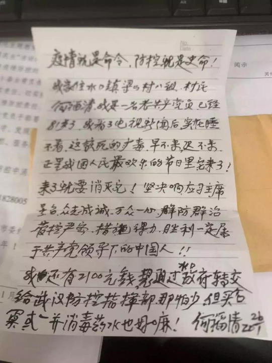 家住大同镇梁山村八组的村民何福清,是一名老共产党员,今年已81岁。他看到了电视新闻播出全国人民众志成城抗击新型冠状病毒肺炎疫情后,翻来覆去睡不着,他想着一定要为抗击疫情做一点自己的贡献。