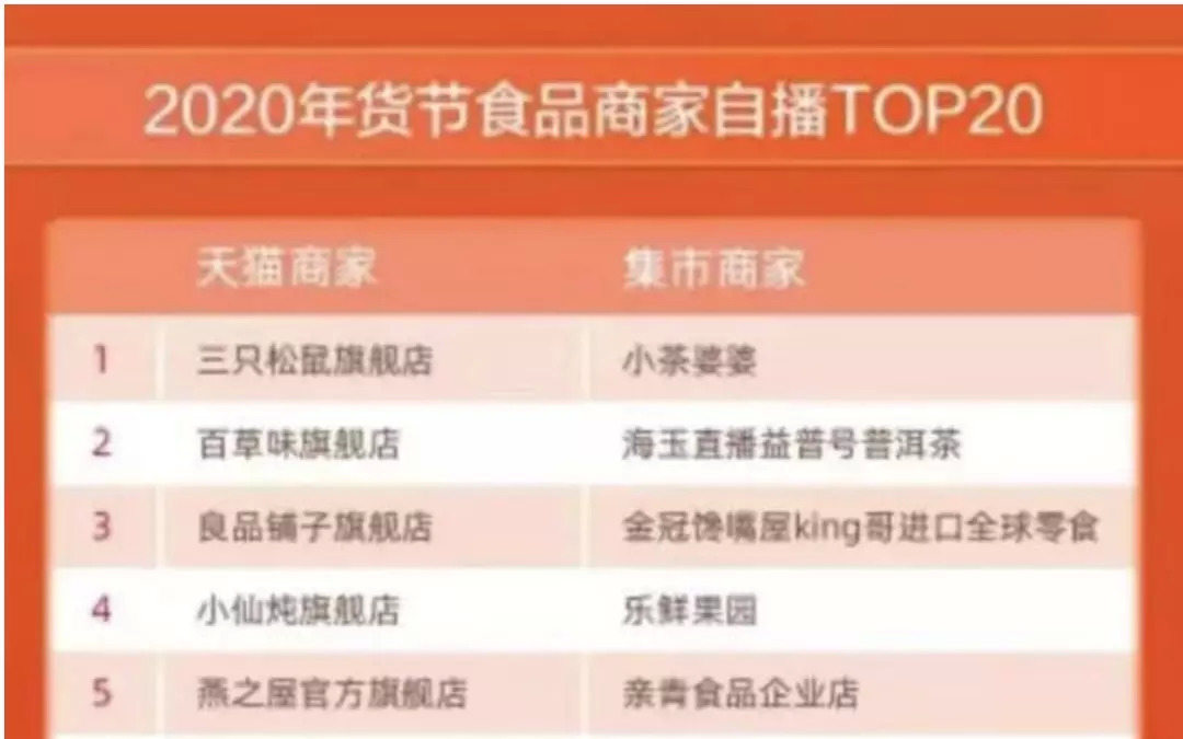 抢占了膨化食品所让出来的市场份额而冉冉升起的一个大类就是坚果。1月20日淘宝直播根据年货季节数据所公布的《2020淘宝直播年货节商家直播排行榜》中,食品类目天猫商家前三甲分别是三只松鼠、百草味、良品铺子,而这几个品牌都是以坚果、干果类产品为核心SKU。