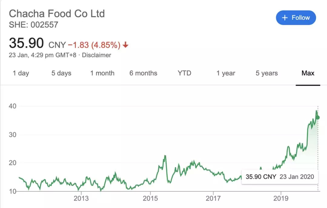 除了几个快速成长中的互联网品牌以外,本土传统坚果零食大厂洽洽食品业绩增长表现也不错,2019年上半年公司营业收入19.9亿元,同比增长6.02%,同时实现净利润2.2亿元,同比增长28.08%;即便是在遇到质检问题挑战的情况下,股价也还是一路上扬,屡屡创下新高。