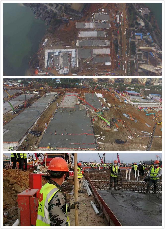 财联社消息,记者从现场直播视频以及武汉建工集团获悉,火神山医院建设正日夜不停,区域基础混凝土浇筑即将完成,工作人员表示,“从现场各区域进度来看,预计今天火神山医院所有区域的基础混凝土浇筑工作都能完成”。(注:三张配图从上到下时间点依次为今日早晨、中午、下午。)