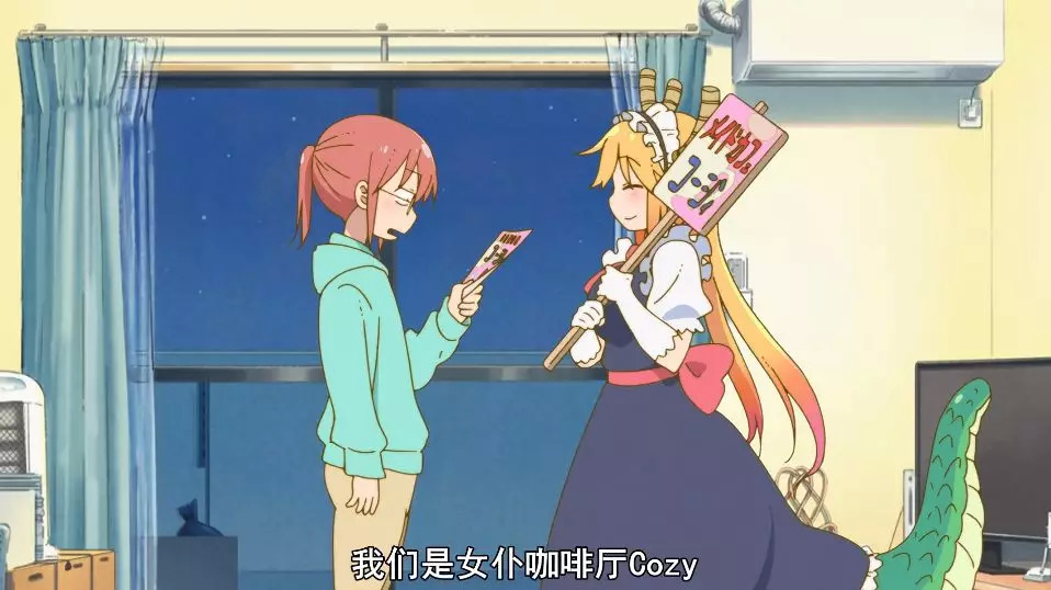 看似日复一日的平凡生活里突然插进来穿越、异世界、龙之类的超现实元素,却依旧统合在以温馨日常为主基调的故事背景下,龙女仆与人类身份差异带来的故事张力,在插科打诨、卖萌吐槽的日常互动中被极力凸显。
