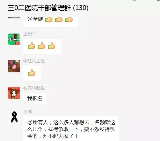 他说这么多人都想去,名额就这么几个,不争取一下就没机会的,对不起大家了。