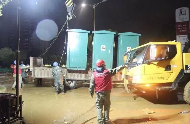 在雷神山医院电缆敷设现场,供电员工冒着严寒钻进满是积水的电缆沟;