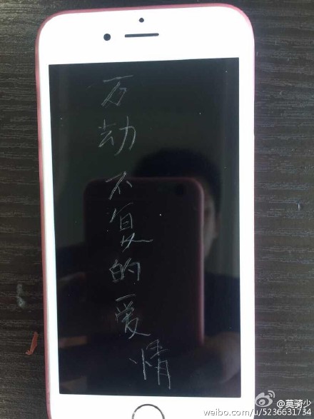 我不知道这条微博你会不会看到,也不知道他会不会看到,虽然我知道你最终还是被他甩了。这些都不重要。我在9部苹果6S上刻字,只是为了祭奠我那份曾经刻骨铭心又万劫不复的爱情,祭奠那个曾经单纯无邪又笑靥如花的她!