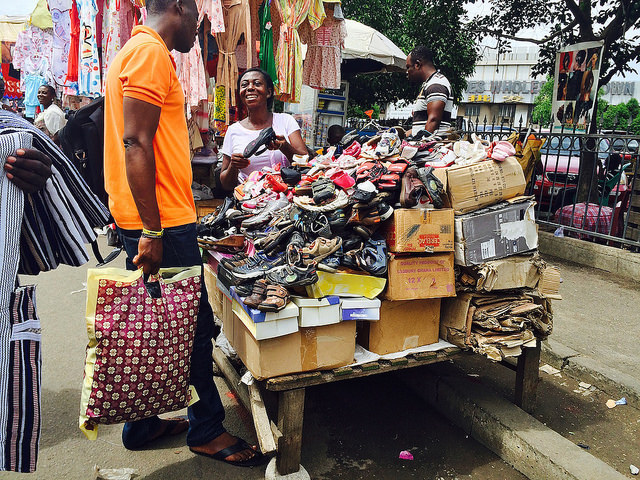“商店老板、小贩和顾客用讨价还价装饰着空气。契维语、加族语和芳蒂语,他们的对话是用当地语言进行的。这是一种熟悉的街道韵律。一位在散步的老人自顾自地唱起了歌;小贩向路人各种打招呼和问候,希望可以吸引他们驻足光顾。”