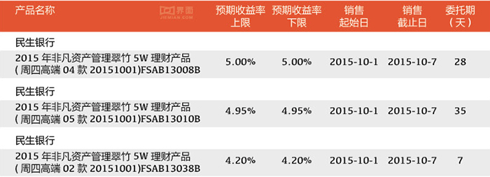 20万元认购起点的理财产品都是由民生银行提供,一共有三款产品,如下: