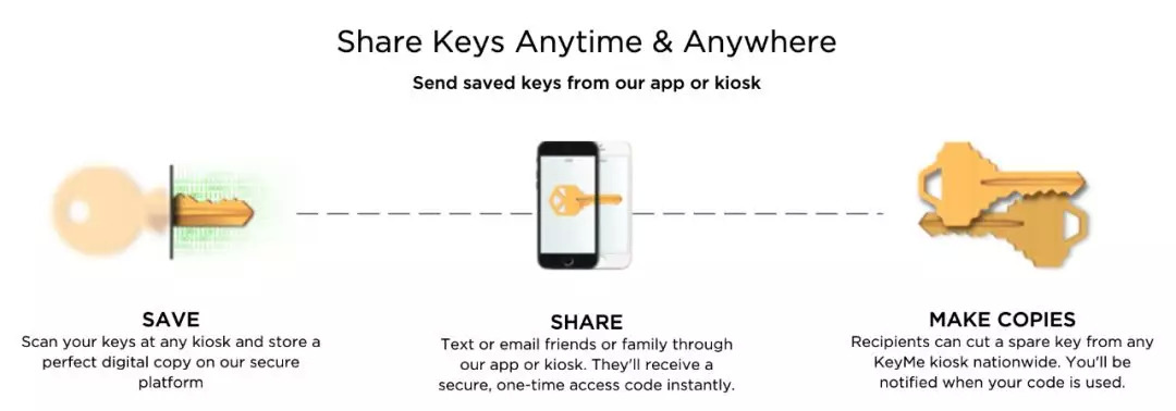 好在,有不少科技公司早已洞悉这一需求,并给出了解决方案。比如,总部位于纽约的KeyMe就设计了一个类似自动贩卖机的钥匙扫描机来改变配钥匙的模式。今年 1月,该公司宣布从投资机构Brentwood Associates筹集了3500万美元资金,旨在扩大市场,让更多的人能够自己动一动手指就配出一把钥匙。