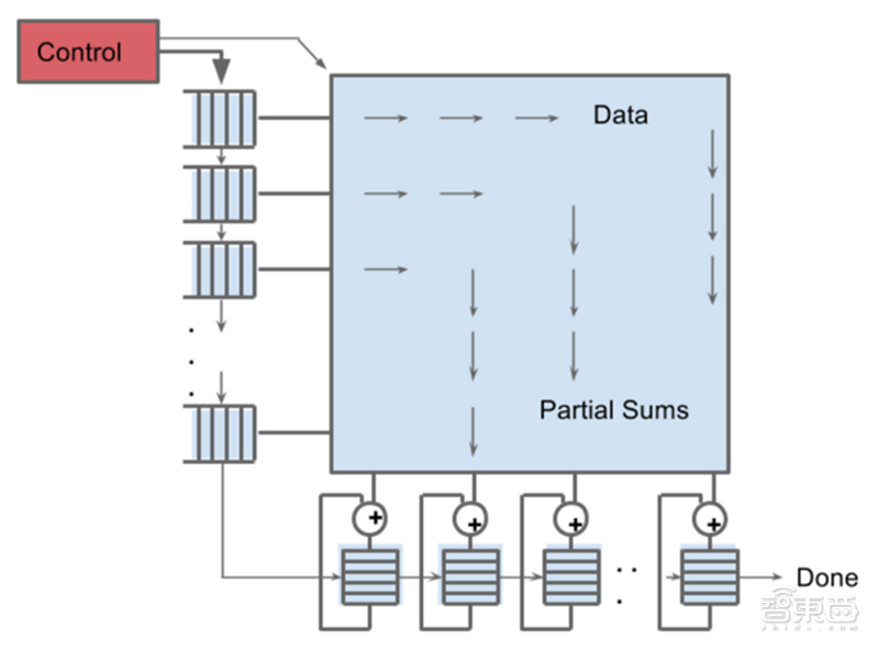 脉动阵列使得在每次运算过程中,谷歌TPU能够将多个运算逻辑单元(ALU)串联在一起,并复用从一个寄存器中都取得结果。