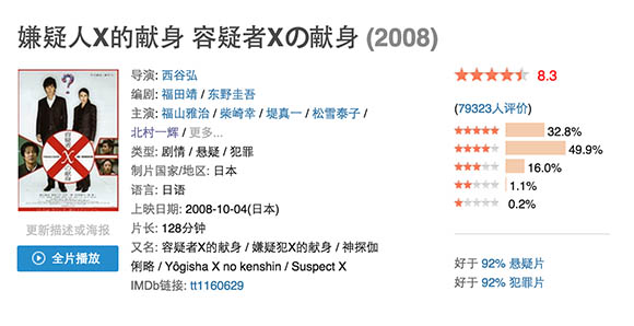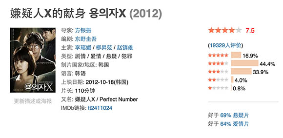 所以千万!千万!千万!要好好拍啊苏导演!不过东野的作品改编影视还是比较有难度,并不是很适合影视化。2008年和2012年日本与韩国都分别翻拍过同名电影,日本版汤川学的演员就是刚刚结婚的福山雅治......