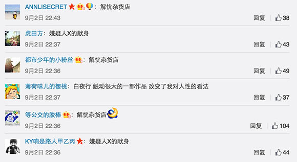而根据评论显示,《白夜行》《解忧杂货铺》《嫌疑人X的献身》的呼声都非常高: