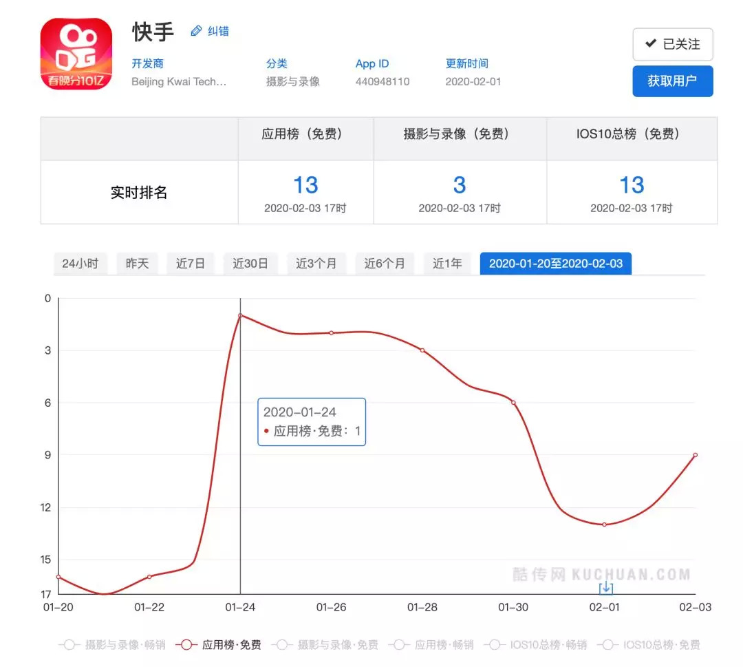 但春晚之后,排名则开始逐渐下滑,直到2月1日到达近期最低位置后又再次上升。这也可以看出,快手对春节期间活动布局和春晚的影响都较为短线。