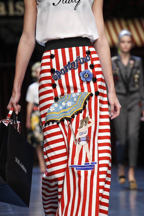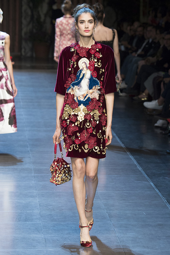 为继续表达设计师Stefano Gabbana与Domenico Dolce对于故乡的爱,意大利的卡普里岛、威尼斯乃至佛罗伦萨等历久弥新的古罗马建筑,文艺复兴时期的雕塑,经典电影剧照等元素都成为本季印花刺绣的主题图案。