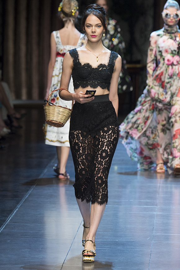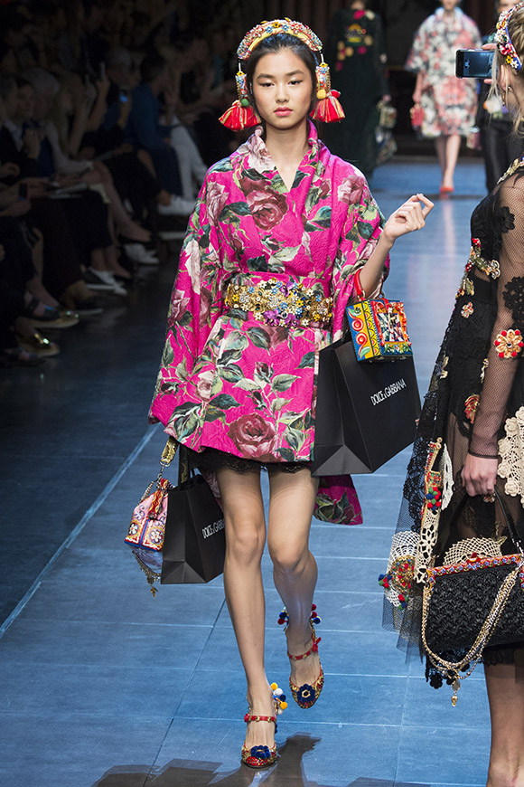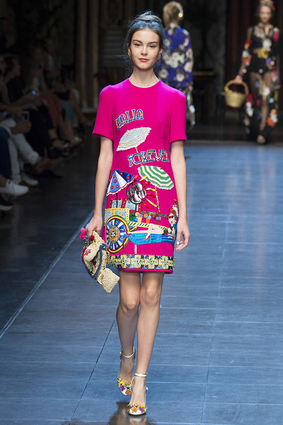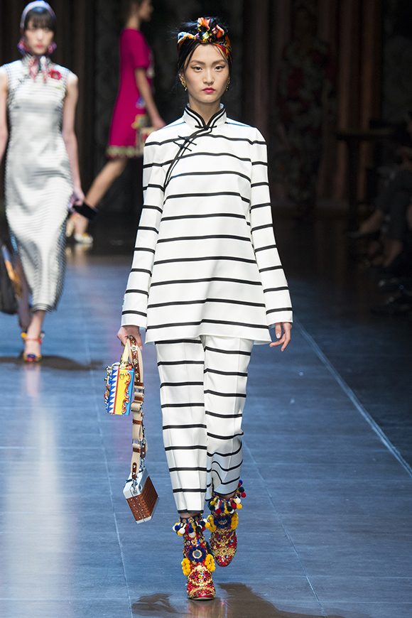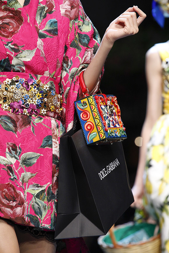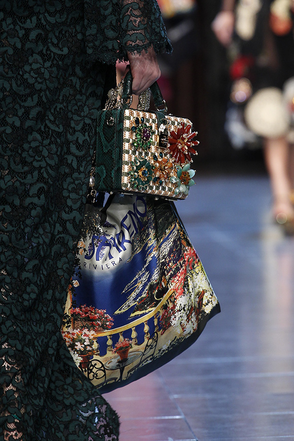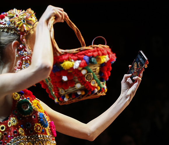 设计师Stefano Gabbana告诉Vogue:“我们不再认为时尚只代表潮流了,我们需要展现的是情感,”因而在这场表露对意大利故土热爱的时装秀上,我们才得以看到模特们将T台作为一场旅行,带着墨镜提着购物袋拿着手机自拍,身姿摇曳。