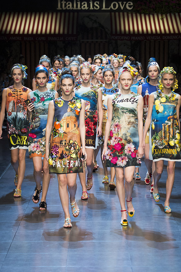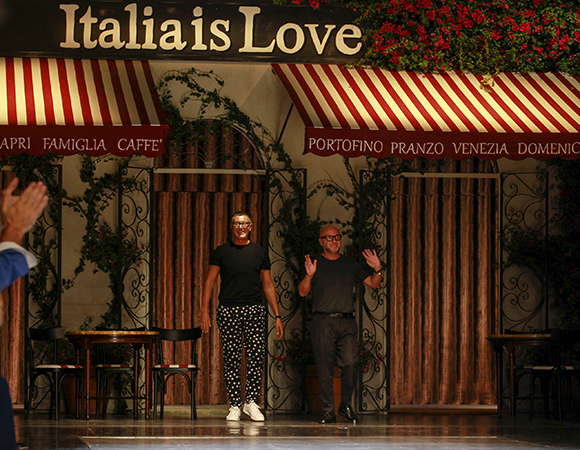 Dolce&Gabbana场地布置成典型的意大利街边小餐馆的样子,餐馆名叫Italia is love,而“Italiais Love”更是被本季的Dolce &Gabbana设为主题。
