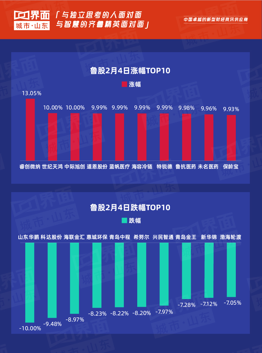 2月4日,山东省内沪深股票有87只个股上涨;120只下跌,1只与上一个交易日收盘价持平。