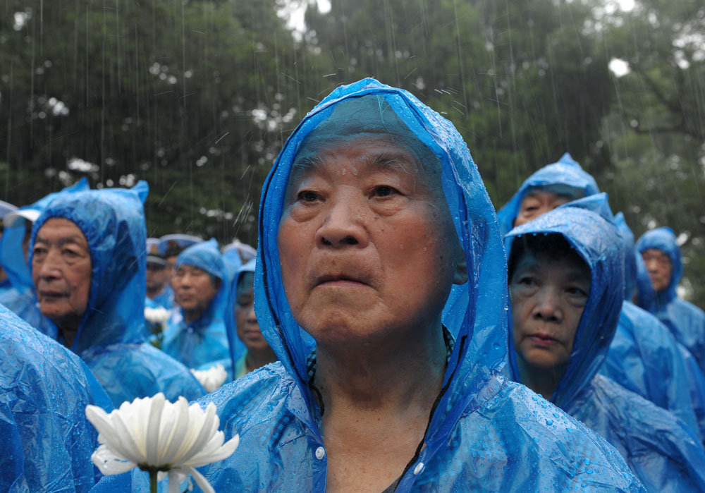 图片来源:CFP2015年9月30日,浙江省舟山市烈士陵园,社会各界代表冒雨参加国家公祭日纪念活动。