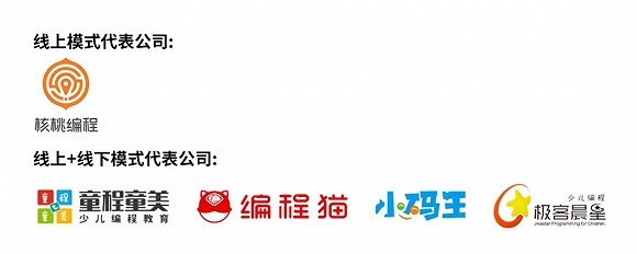 在梳理的过程中我们发现,少儿编程第一梯队的公司几乎没有只做线下模式的企业了,以编程猫、童程童美等为代表的企业均以线上线下相结合的授课方式,值得注意的是核桃编程可能是唯一的线上模式的少儿编程的企业。