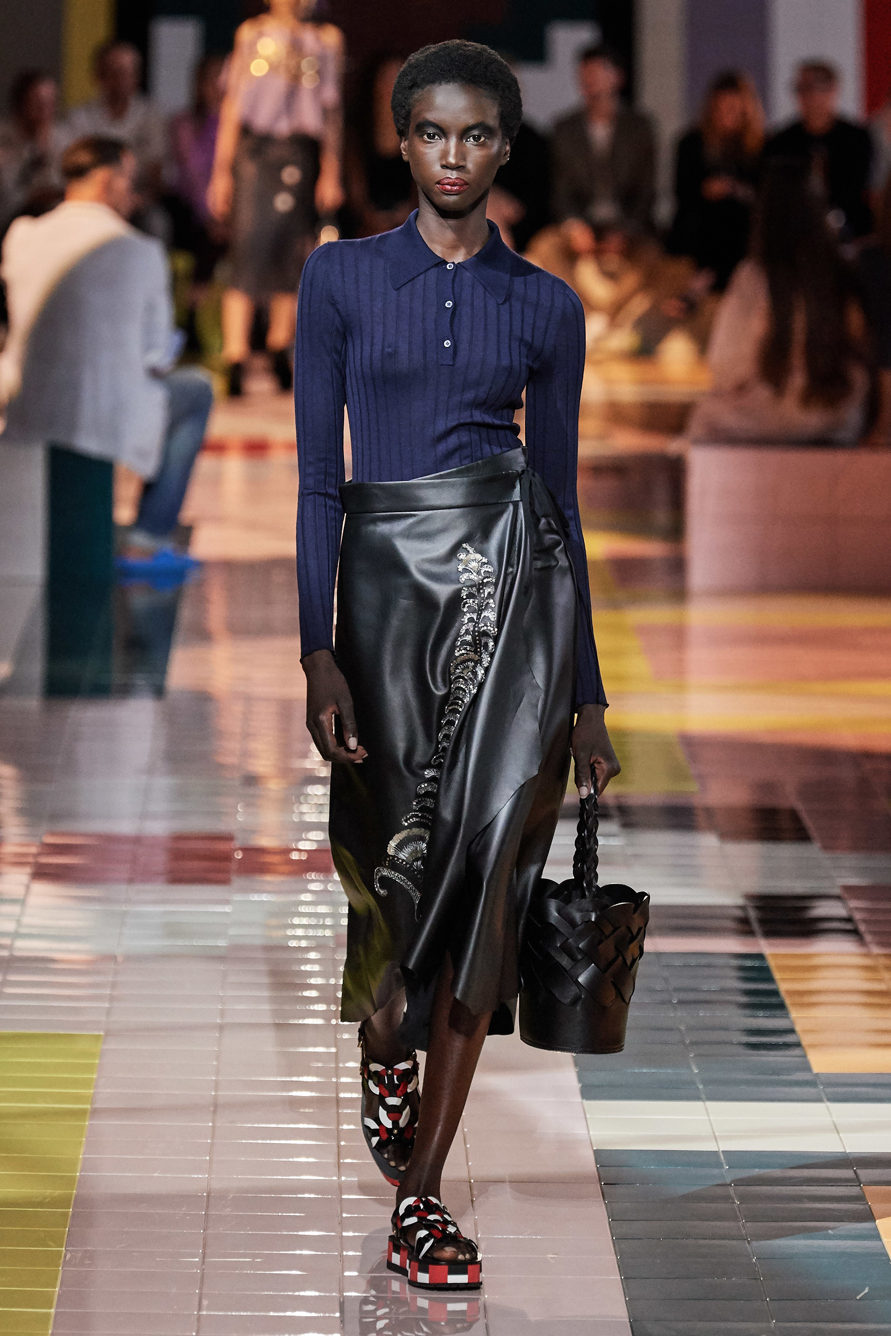 Prada 2020春夏系列中Polo领毛衣就非常有存在感,并且你能在这场大秀中发现Polo领毛衣有着可爱的百搭特质。