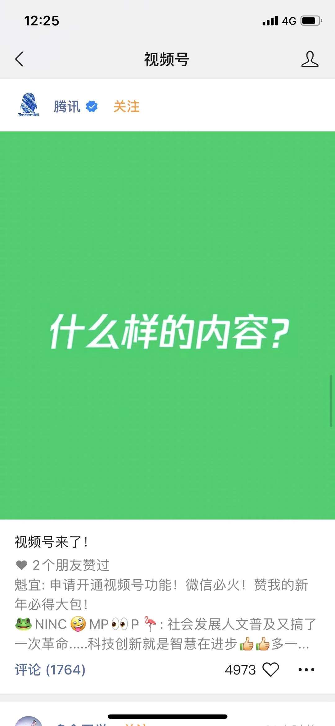 在微信界面中,这算得上是一个级别很高的入口。点击进入后,可以看到系统推荐的一些视频内容,以单列信息流、时间倒序的方式进行排列。