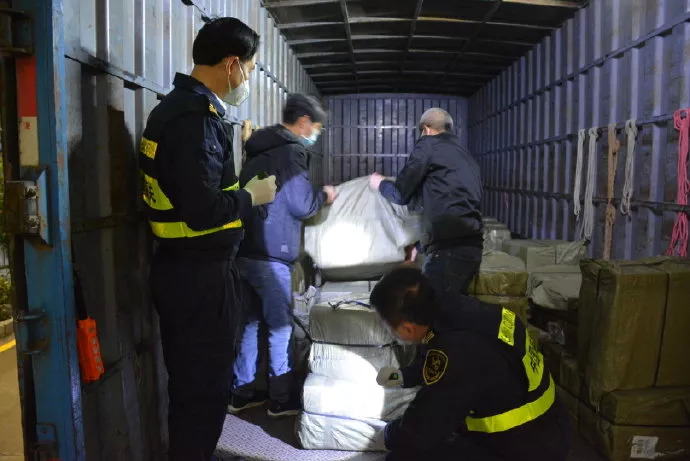 2月3日中午,一批供应武汉的进口医疗物资运抵广东佛山的南海三山港,该批物资为一次性乳胶手套645万双,价值约22万美元。广州海关所属佛山海关驻南海办事处启动绿色通道快审快放,用时15分钟就办结现场通关验放手续。