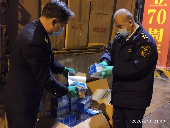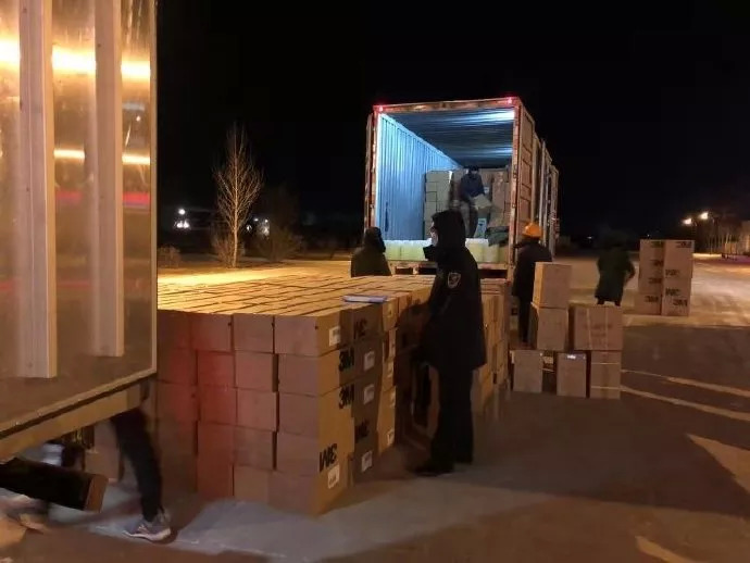 2月4日晚,74.47万只防护口罩抵达满洲里公路口岸和赤峰保税物流中心,满洲里海关连夜组织防疫物资应急通关保障人员迅速办理相关手续,采取先登记放行后进行报关的方式,确保进境物资第一时间投入疫情防控一线。