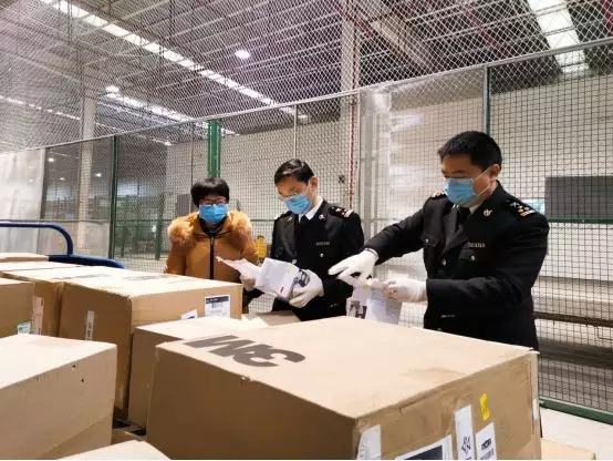 2月4日,成都双流机场海关在快件渠道快速验放一批境外捐赠口罩,共计8万只。为全力保障涉及新型冠状病毒感染的肺炎疫情物资快速通关,成都双流机场海关专门设立了防控物资专窗,启动了绿色通道,坚持全时守候,实现疫情防控物资即到即提、通关“零延时”,全力支持地方新型冠状病毒感染的肺炎疫情防控工作。