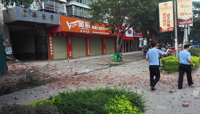 据新华社报道,10月1日8时左右,广西柳城县又发生一起爆炸。一栋6层楼的民房受损,爆炸产生的建筑碎砖石有的已飞到门前的一条公路对面。目前,当地公安、消防部门已赶到现场。
