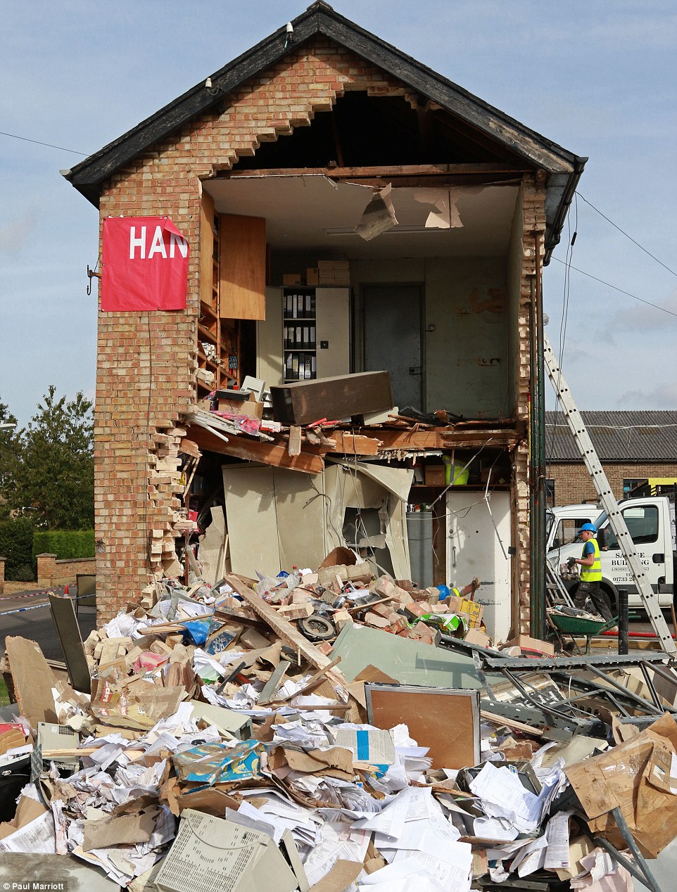最近一起抢劫案发生在当地时间周二(9月29日)凌晨时分,地点在靠近剑桥郡彼得伯勒的威特利斯村上。警方到达现场后发现,被抢劫的德尔菲加油站已是面目全非,两侧的墙体皆被撞毁。