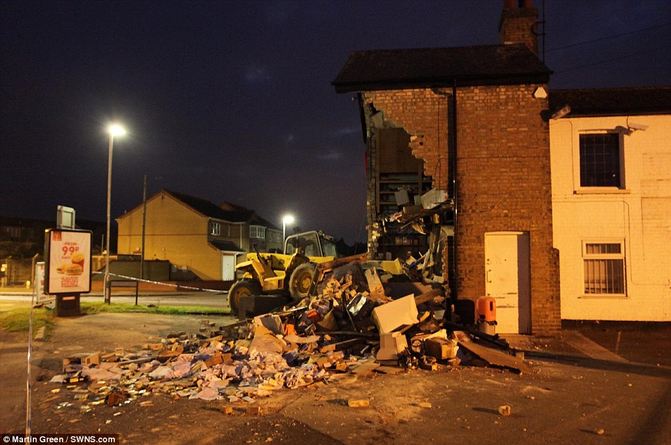 9月26日凌晨1点45分左右,一个罪犯开着挖掘机撞毁了哈洛地区的一家马丁斯报亭,取走了报亭旁的提款机。