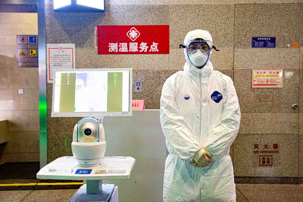 上海虹桥火车站六个出站口配备了共17台医用红外热像仪。每个出站口除了车站工作人员,还配有武警力量维持秩序并为旅客提供帮助。