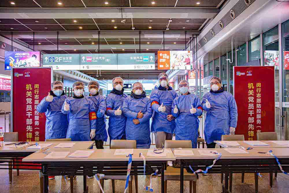 由上海市闵行区机关干部、公安民警以及群众组成的党员先锋队、志愿者队伍已经全部在岗在位。其中,闵行区区级机关党员先锋队主要承担上海虹桥火车站测温工作,以及核验来沪人员在线上填报的健康信息等。