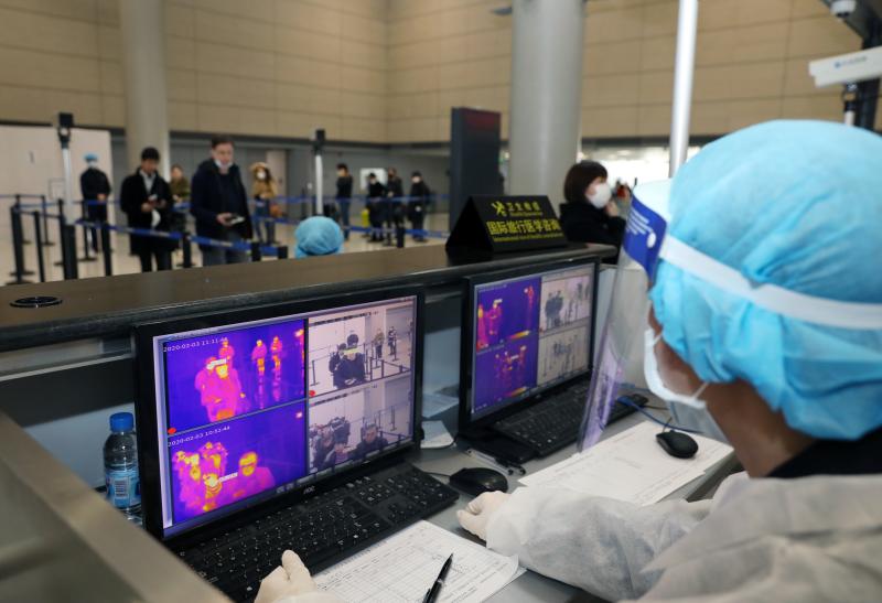 1月28日,防控措施再度升级,两场实施对所有进出上海航班的旅客进行测温登记排查,进入航站楼、办公楼等企业所属公共场所的所有人员同步进行体温检测。