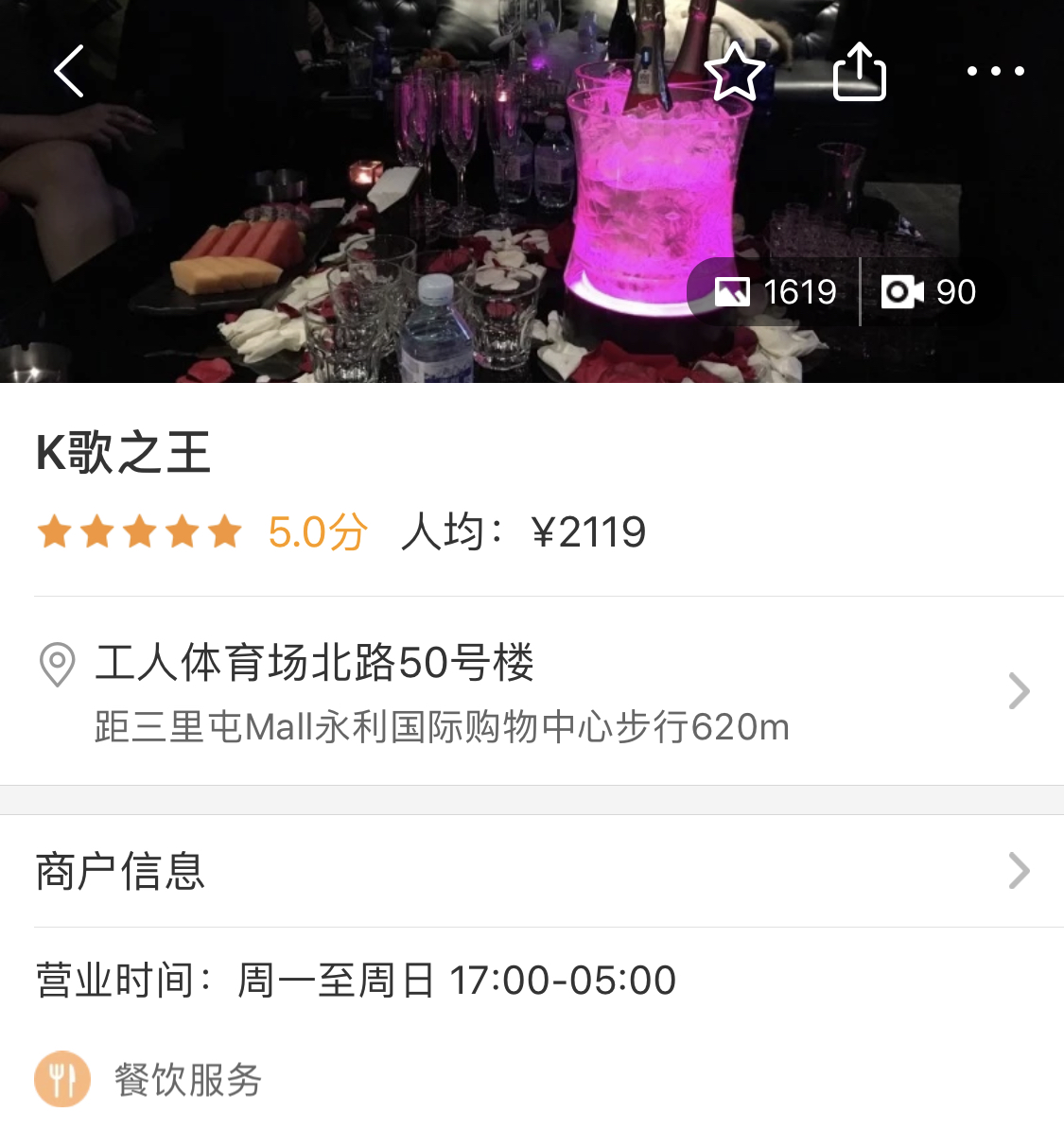 官网信息显示,K歌之王品牌为上海中贯汇都餐饮娱乐有限公司所持有,至今在全国有四家分店。首家K歌之王KTV旗舰店于2013年6月在上海开业。K歌之王北京旗舰店在2015年12月开业,其经营模式包含了KTV、中西餐饮和酒吧娱乐,营业区分3层,总面积达到5500平米,包括63个包房和互动酒吧区。根据大众点评显示,它在北京娱乐会所热门榜中排名第一;而根据美团显示,它的人均消费价格为2119元。